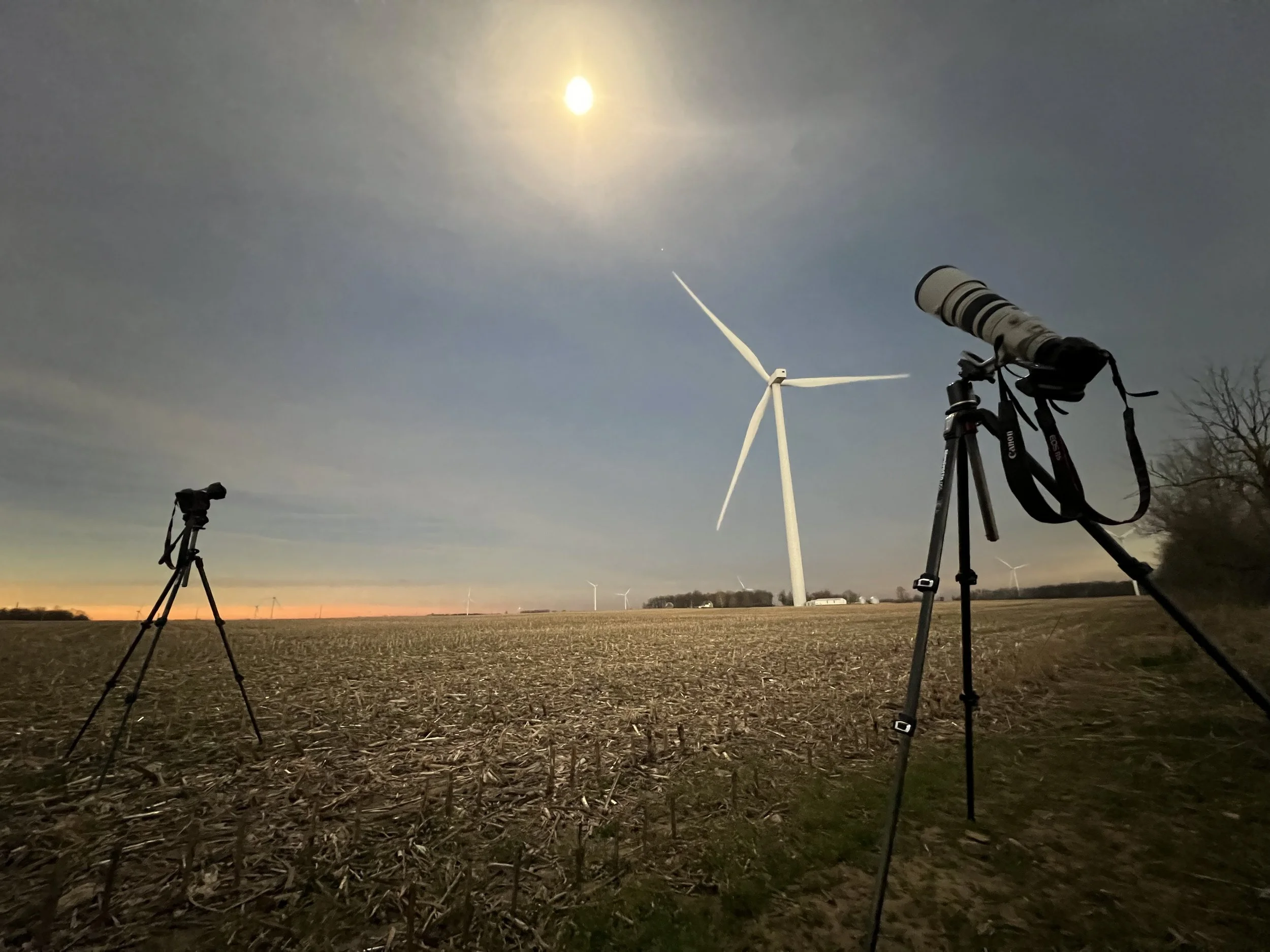 I didn't want to just photograph the sun like everyone else was; I wanted a strong foreground to create an interesting composition. I'm fascinated by all the wind turbines in Indiana. The largest wind farm in the northwest is outside totality, so I had to find some others. I found a patch of turbines in a very remote area northeast of Indianapolis with no towns for miles. Now I just needed to find the right composition with the right turbines.
